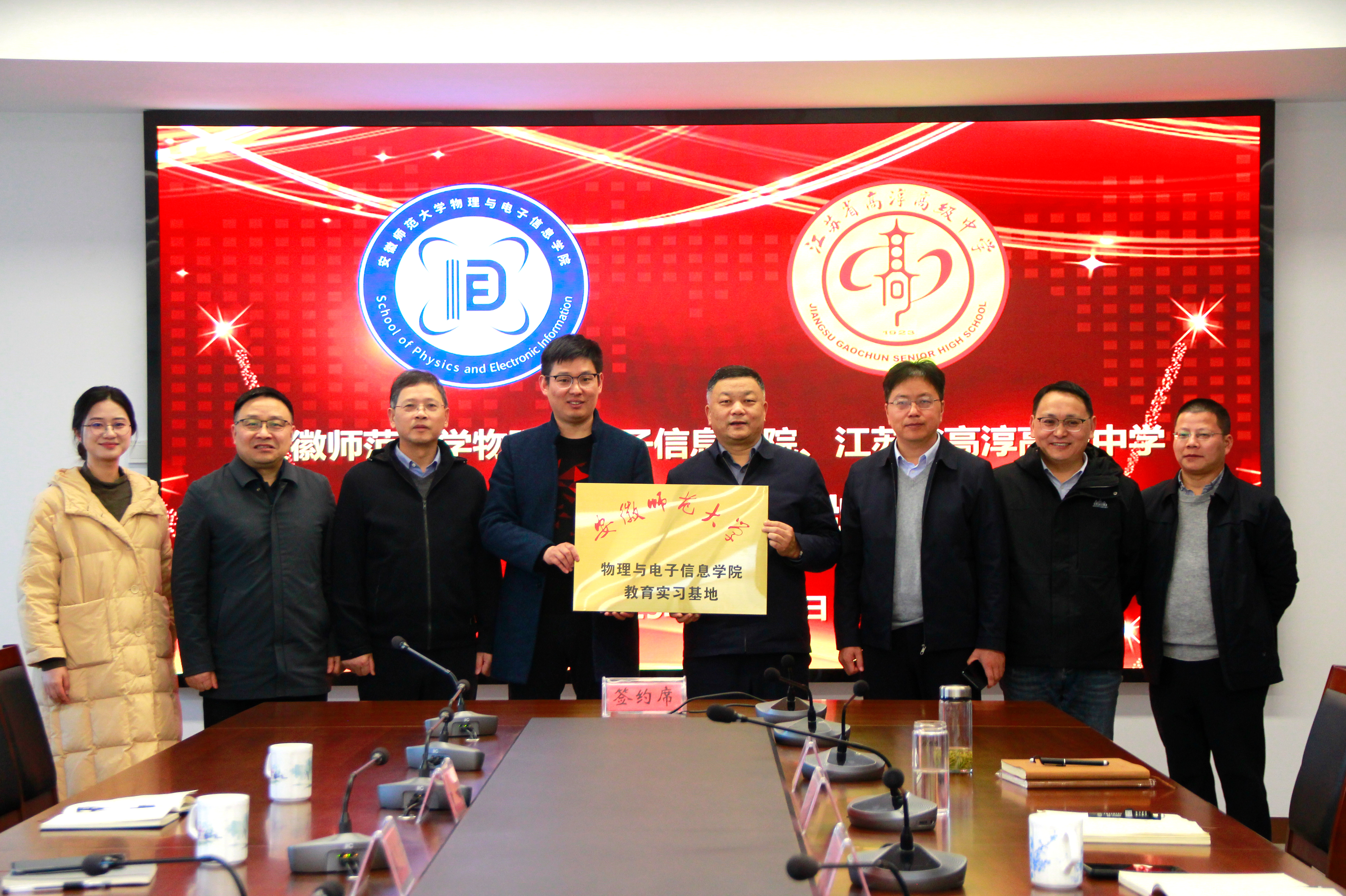 党委副书记凌从祥、物理学专业副主任汪志荣,以及物理学专业辅导员刘敏、邹孝龙一行赴南京市高淳区,先后走访江苏省高淳高级中学、高淳区湖滨高级中学和淳辉高级中学,成功签订教育实习协议并举行实习基地挂牌仪式。